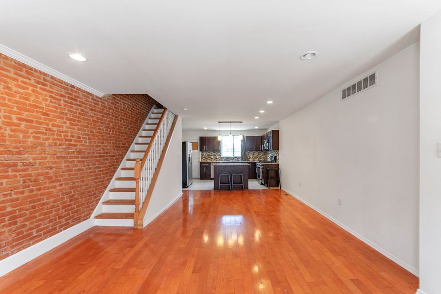 Two bedroom one bath townhome located on a quiet block in the bustling Point Breeze neighborhood. First floor has a massive kitchen with tile flooring, stainless steel appliances, glass tile backsplash, granite countertops, and a large island with additional storage. The open concept living area and the rest of the home have hardwood floors. Upstairs are the two bedrooms, each with ample closet space and plenty of sunlight. The large full bath has a cherry wood vanity and tub/shower combo. The home features exposed brick, central AC, and washer/dryer located in the basement along with ample storage space. Finally, out back there is a fenced in patio, perfect for relaxing in the summer months and an included chiminea for chilly fall evenings.