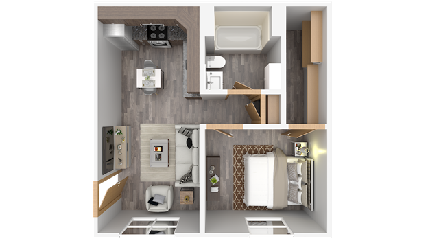 Updated units feature new vinyl plank flooring, kitchen cabinets, countertops, and stainless appliances.