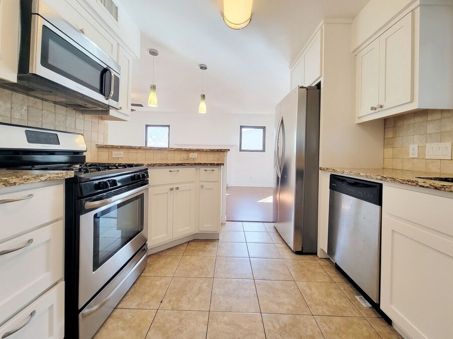 All bedrooms offer comfortable carpeted flooring, generous closet space, and a large walk-in closet in the primary bedroom. Washer and dryer are included.