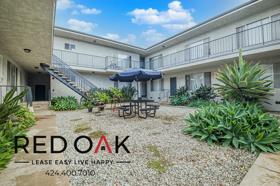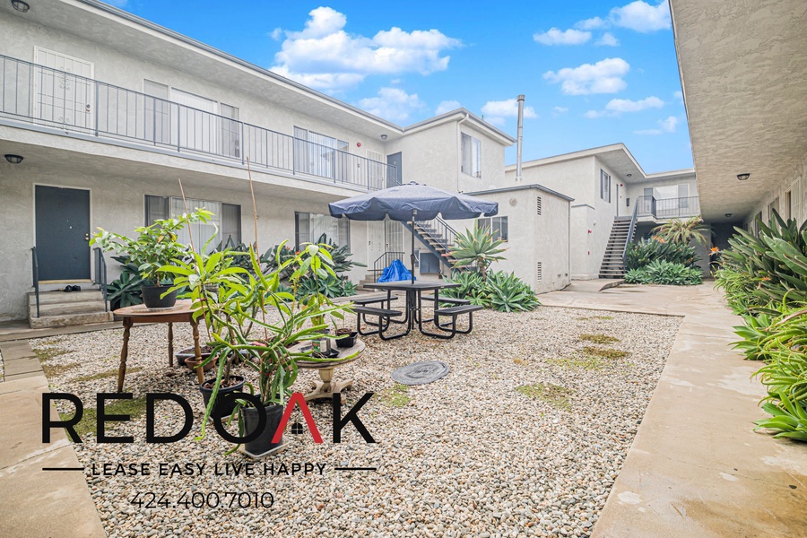 ~ Community Patio: Relax and mingle under the sun.