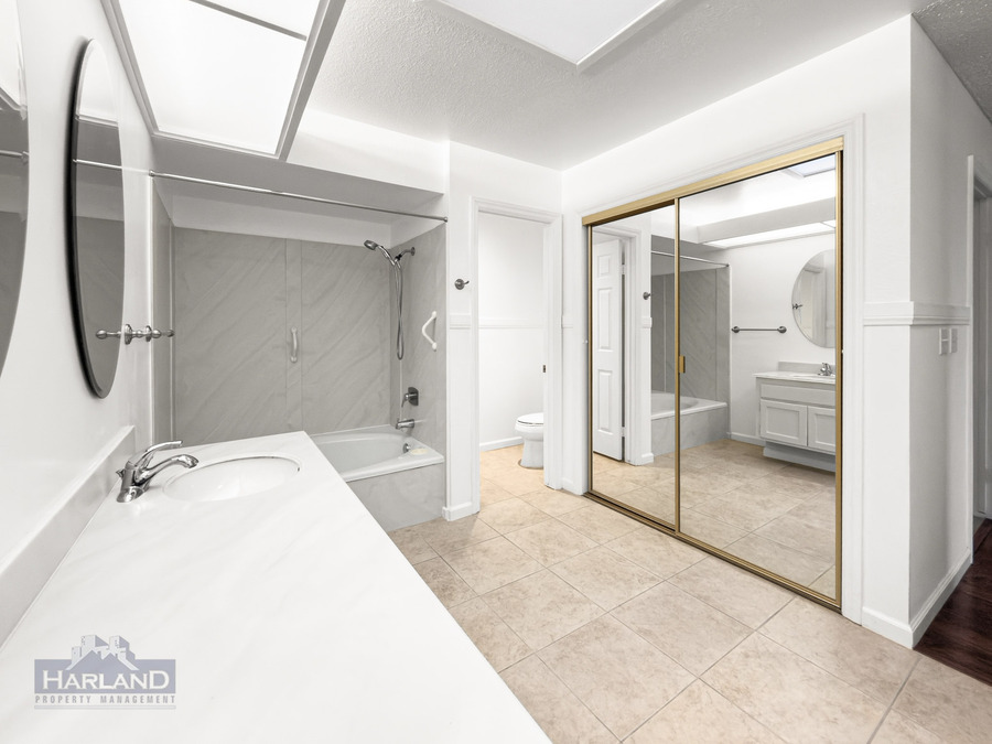 The kitchen provides plenty of storage and functionality, while both bedrooms are generously sized, including a primary suite with ample closet space and an en-suite bath.