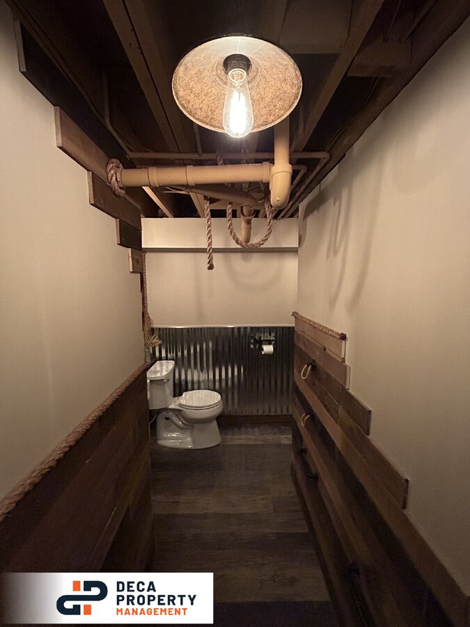 The finished basement adds incredible additional living space, featuring a massive family room ideal for entertainment, movie nights, or a game area. You'll also find a separate storage room and a truly unique highlight, a charming rustic western-themed bathroom complete with a swinging saloon door, creating a fun and memorable space.