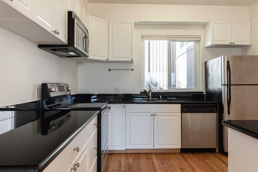 - Hardwood cabinets