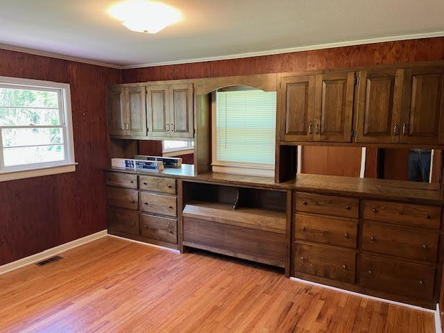 - Hardwood cabinets