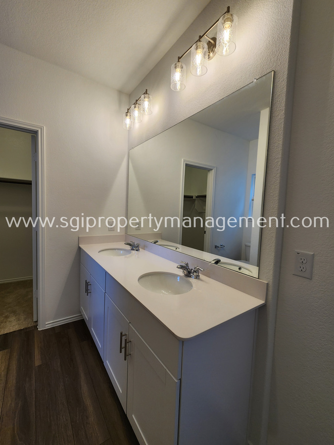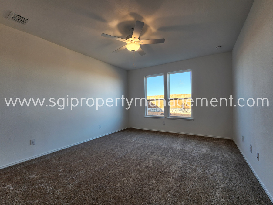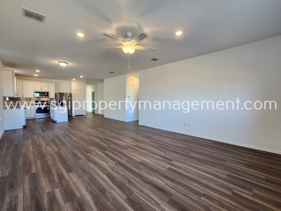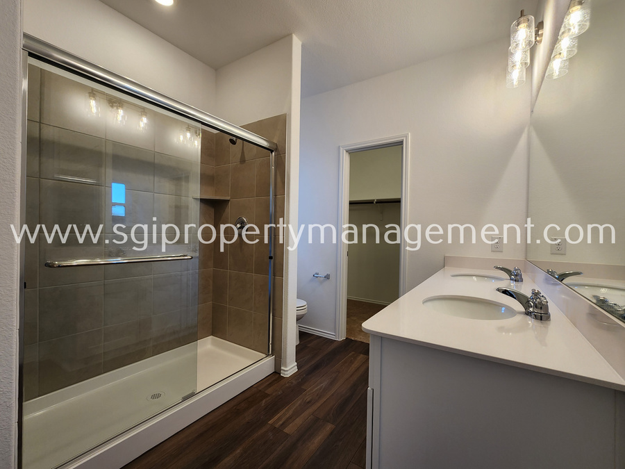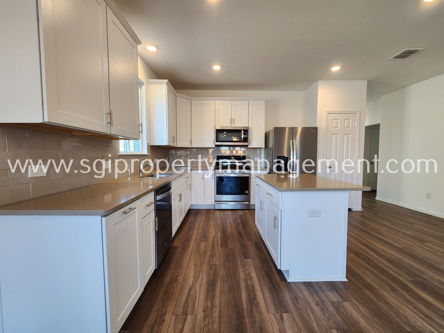 Well thought out 4 Bedroom Floor plan. 4th Bed upfront has it's own Ensuite bathroom and Walk in Closet. Master Bedroom Tucked away in the Back on it's own and has a Large Walk in Closet, Separate Shower and Tub as well as Dual Sinks.Wide Open Floor plan With Spacious Kitchen with SS. Appliances, Quartz Counters, and Island. Big Backyard with plenty of room to run. Set up a Showing Today. Lessee to verify all facts. Pets conditional.