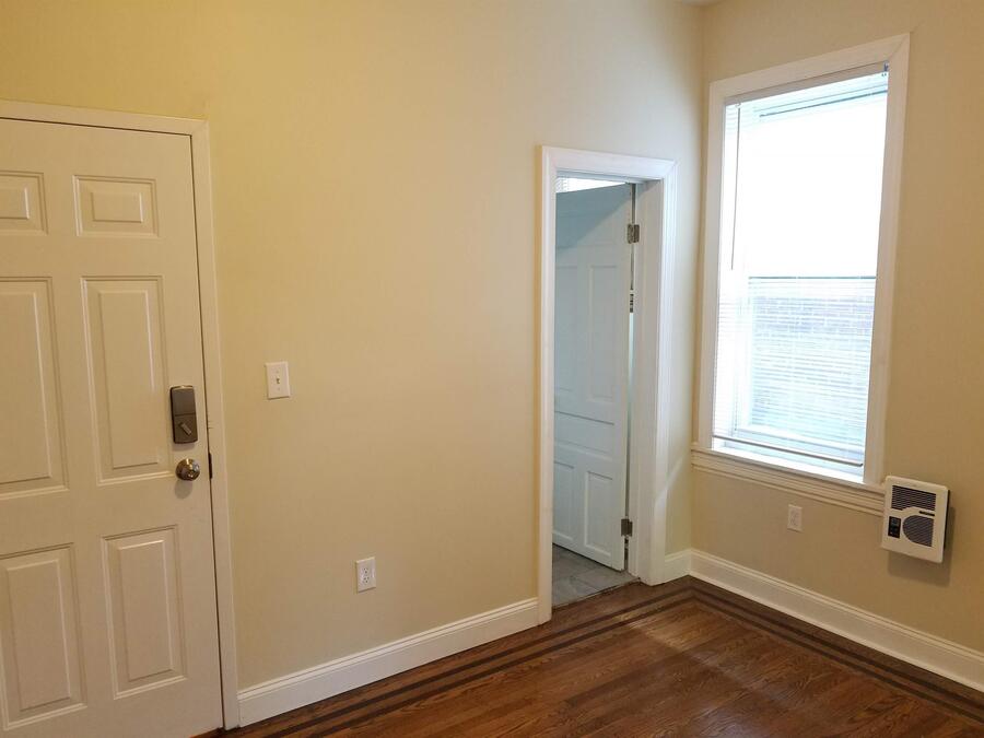 Beautiful renovated 1-bedroom and 1-bathroom apartment for rent. Available now! The entire building was recently renovated to-the-studs, with all new electric, plumbing, kitchens, baths, and fire sprinkler system. The quiet location on the 3rd floor overlooks the backyard and gets plenty of natural light. Tenant pays their own electric and internet, plus a flat $35/month for water. There is no gas in the building. Close to public transportation. Easy on street parking. Two blocks from Broad St and Allegheny Ave transportation hub. 10-minute subway ride to Center City. 2 blocks from Temple Medical Center and Temple Hospital.