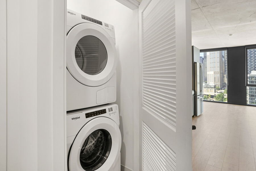 Are you moving to Chicago for work or just wanting a change of scenery? South Loop s newest luxury apartments could be your new home. With studios, convertibles, one, two and three-bedroom units you ll definitely find what you re looking for. One of the standout features is the 9 ceilings and floor-to-ceiling windows, which flood the units with natural light and offer stunning views of the city skyline, Chicago River, and Southbank Park. You can also enjoy the convenience of solar room darkening shades for those days you just want to sleep in :). .The units feature beautiful wood plank flooring and soft closed cabinetry with underlighting, giving you a sense of luxury and sophistication. The black granite countertops add a touch of elegance to your space, making it perfect for entertaining guests. In-unit washer and dryer make laundry a breeze, and the balconies (select units) are great for getting fresh air. The frameless sliding glass showers add a sleek and modern touch to