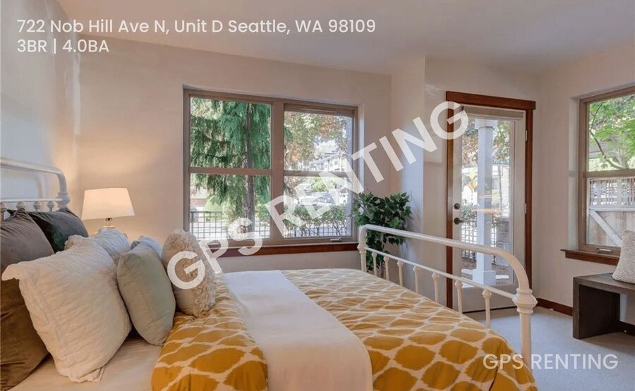 Welcome to Unit D, a bright and spacious 3‑bedroom, 4‑bath townhome in Lower Queen Anne. This unit features open living areas with plenty of natural light, a modern kitchen, comfortable bedrooms, and multiple bathrooms for convenience. Assigned parking is included.