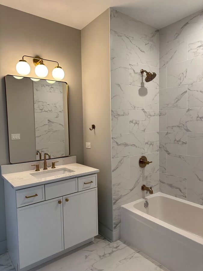 • Luxury engineered wide-plank flooring, porcelain tile in bathrooms.