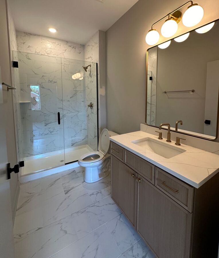 • Luxury engineered wide-plank flooring, porcelain tile in bathrooms