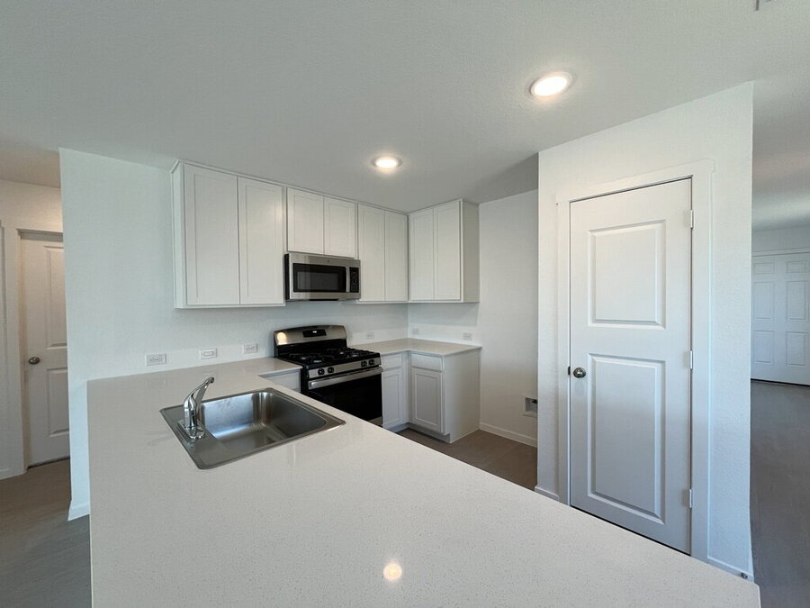 The kitchen is designed for convenience and connection, featuring a breakfast bar, dishwasher, microwave and a pantry for extra storage. The primary bedroom offers a peaceful retreat with a walk-in closet and a private ensuite including a tub/shower combo and single vanity.