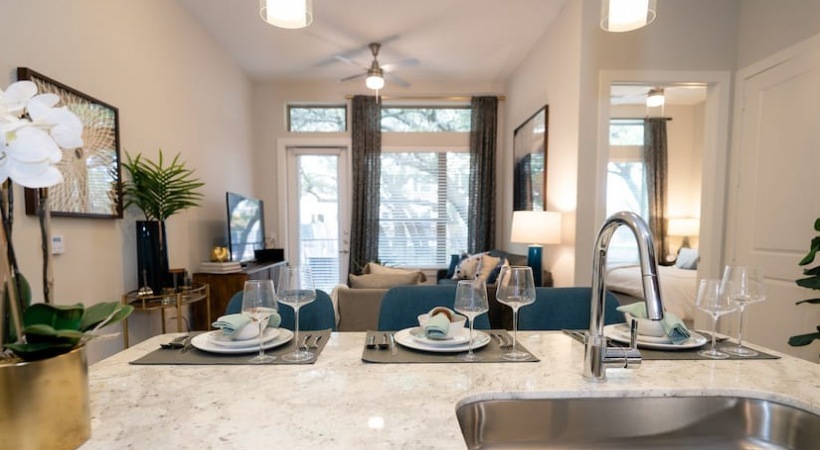 Step outside to explore meticulously landscaped grounds, boasting serene outdoor spaces and recreational amenities. Lounge by the resort-style pool, maintain an active lifestyle in the fitness center, or socialize in the welcoming community areas. This central location provides convenient access to Austin's cultural scene, dining options, and entertainment hubs, ensuring a lifestyle that harmonizes both leisure and practicality. Embrace the luxurious atmosphere of these apartments, where every detail is tailored to enhance your living experience in the heart of Austin's dynamic community.