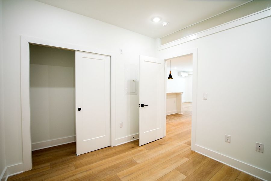 Don’t miss the chance to live in this luxury apartment building in a great location in Philadelphia’s Mt. Airy neighborhood! The building and its 67 units have modern amenities to make for a wonderful living arrangement. Each apartment comes with Bluetooth/mobile enabled door locks, hardwood flooring, air conditioning, in-unit laundry and its own private balcony. Unit 210 features a spacious 2 bed, 1.5 bath layout with a living space and sleek kitchen that includes soft-close cabinetry, white subway tile backsplash, stainless steel appliances and an island perfect for dining and entertaining. The full bathroom has frameless shower doors, dual shower heads and white tiling with a matching white vanity, while the bedrooms have their own closets for storage.