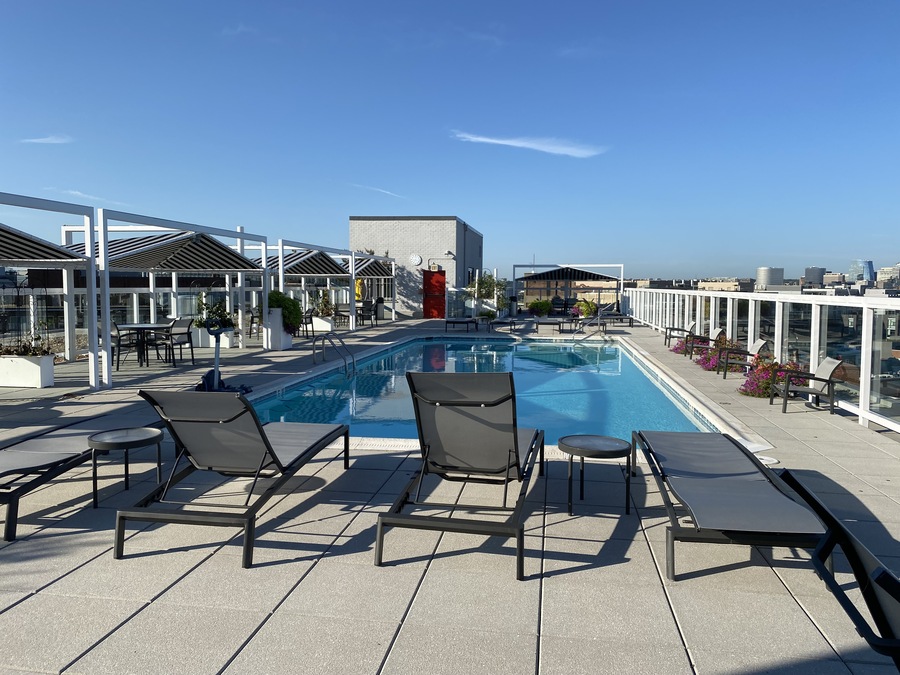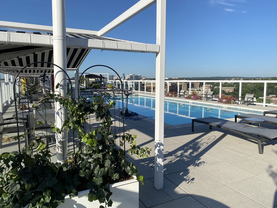 Rooftop pool that is heated and open 10 months of the year - this is reason enough to rent this condo. Incredible DC location - 1330 New Hampshire Ave NW in the Appolline - 1 block south of Dupont Circle. 2 blocks to Dupont metro and walking distance to hundreds of fabulous restaurants, nightlife, cafes and shops. Walking distance to Georgetown, Logan Circle, West End and downtown DC. Walking distance to Trader Joe's and Safeway. Amazing building that is professionally managed with 24/7 front desk. Amazing city views and unrivaled entertainment value!