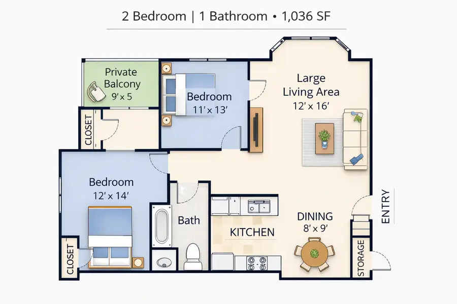 Introducing the 2 Bed 1 Bath Silver Floor Plan located in Greenville. With 1036 sq ft of thoughtfully crafted space, this layout provides a modern design for convenient living. Enjoy a lifestyle of unmatched comfort with amenities that cater to your needs. Contact us today to schedule your tour of this exceptional floor plan.