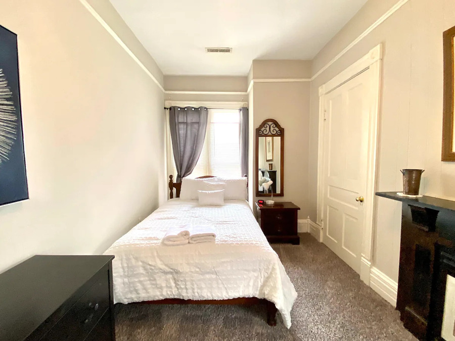 This 3-bedroom apartment offers a blend of historic charm and modern comfort. Featuring high ceilings, hardwood floors, and multiple decorative fireplaces, this home exudes timeless elegance. Neutral paint and large, bright windows make the space feel open and inviting.