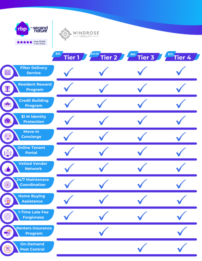 TIER 1: $35/month (NO renter’s insurance and NO pest control on demand included)