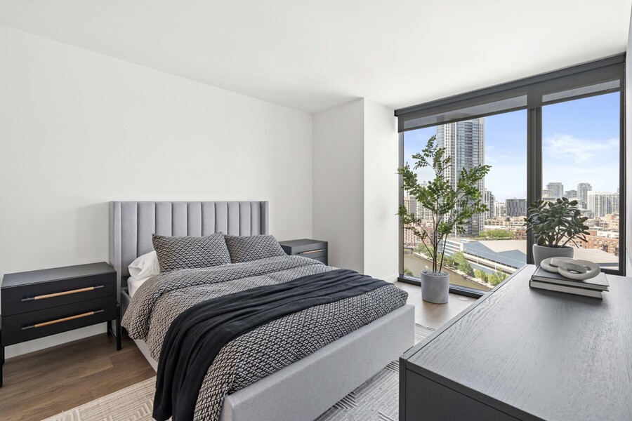 Just steps away from the Chicago Riverwalk, residents can enjoy leisurely walks along the water or explore local cafes and shops. The apartment offers an ideal base for those seeking a dynamic downtown lifestyle.