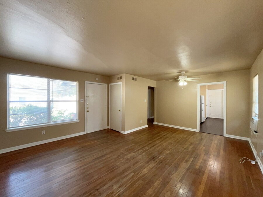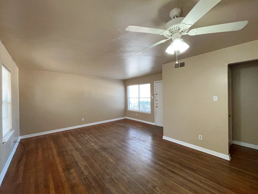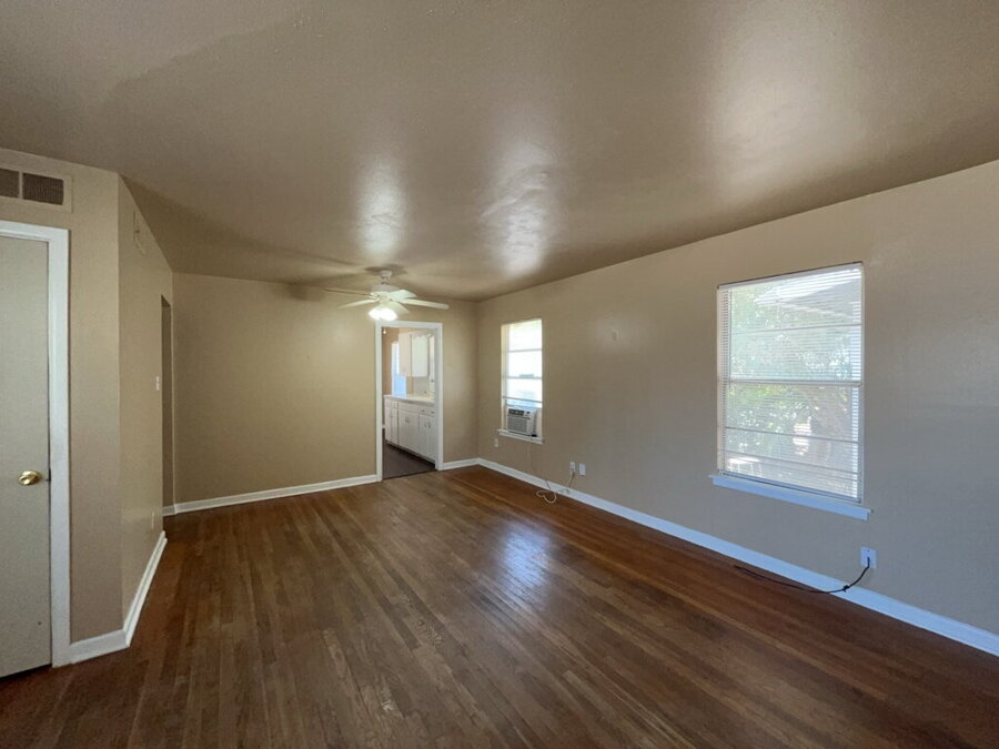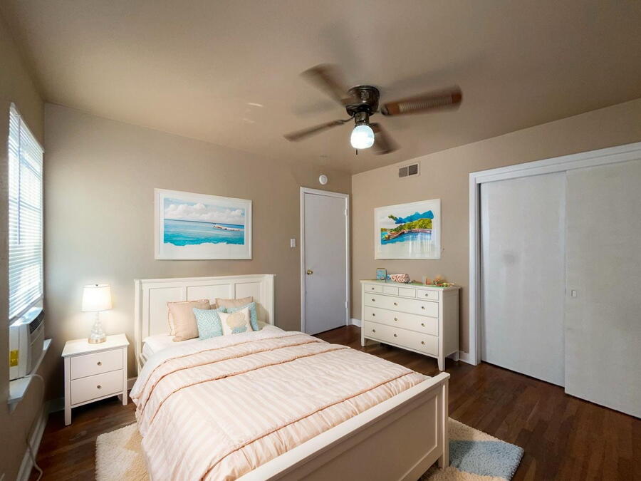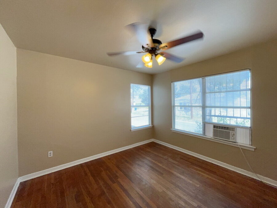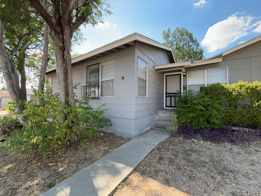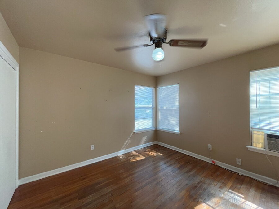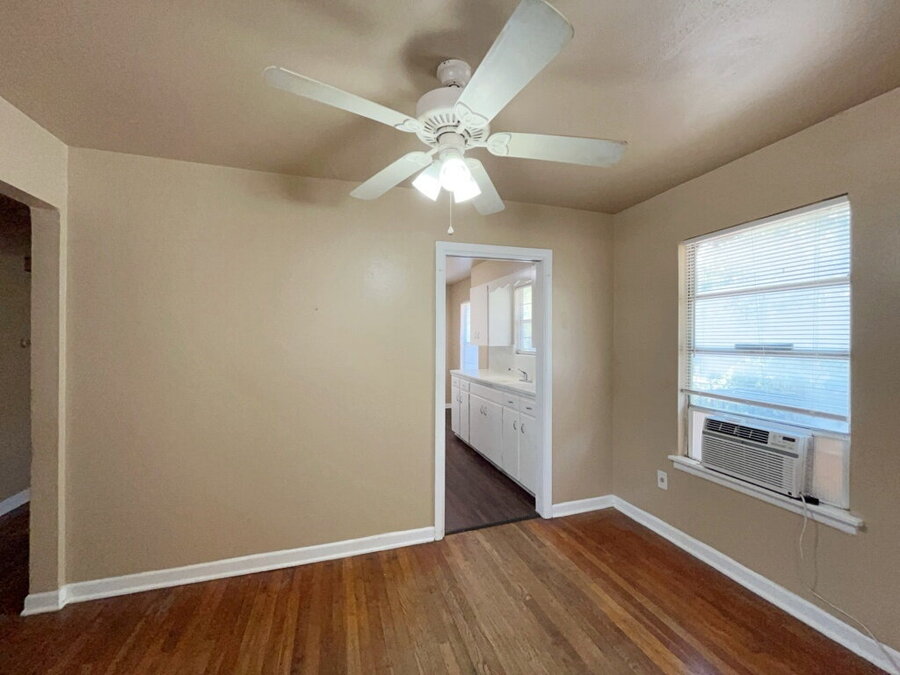 Discover the appeal of this charming 2-bedroom, 1-bathroom home located on a corner lot featuring timeless wood flooring throughout, creating a warm and inviting ambiance.