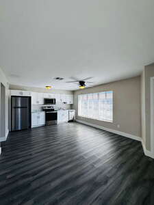 Live in the center of it all in this expansive 1,557 square foot residence at Bimini Square where modern luxury meets unique architectural design. The heart of this apartment is the stunning rotunda great room featuring a curved wall of windows that floods the open-concept space with natural light and offers commanding views of the surrounding area. This flow continues into a gourmet kitchen outfitted with white shaker cabinetry, sleek quartz countertops, and a vibrant blue geometric tile backsplash that perfectly complements the coastal setting. Premium stainless steel appliances, including a glass top stove and a dedicated wine refrigerator built into the massive center island, make this space perfect for entertaining. Step outside onto your private balcony to enjoy the fresh air and take in the sights of Cape Coral from your own outdoor retreat. Inside, the home is finished with luxury wood-look plank flooring throughout, eliminating the need for carpet and creating a seamless transition between rooms. The primary suite serves as a private sanctuary with a spacious walk-in closet and a spa-inspired bathroom featuring a double vanity with contemporary backlit mirrors and a glass-enclosed shower. A second full bathroom includes a tiled tub and shower combination with the same high-end finishes. Additional conveniences include a separate laundry room with a full-size side-by-side washer and dryer, a built-in mudroom bench at the entry for added storage, and the benefit of being located in a brand-new mixed-use building with Lee Health facilities right downstairs.