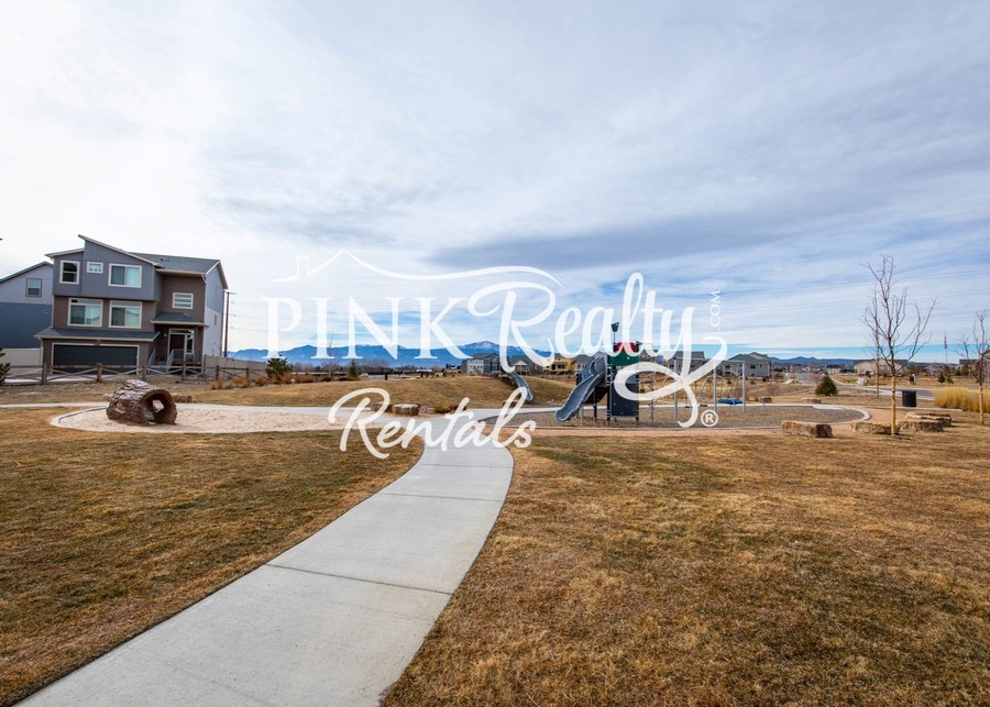 This stunning 3-story home has AC and is located close to shopping, dining, and parks. The Main level of this home has an open floor plan which includes, the Dining Room, Kitchen, and Living Room. The Dining Room has a walk-out to the deck, which has views of the city, and Pikes Peak. The Kitchen features beautiful stone counter tops, a large island with breakfast bar seating, and a pantry. On the upper level, you will find the master bedroom with an en suite, two bedrooms, a full bathroom, and the conveniently located laundry room. On the lower level are 2 flex rooms with a walk-out to the patio and backyard. This community offers a clubhouse with 24-hour fitness room and outdoor Jr. Olympic heated pool, tennis courts, tons of trails and parks throughout and much more!