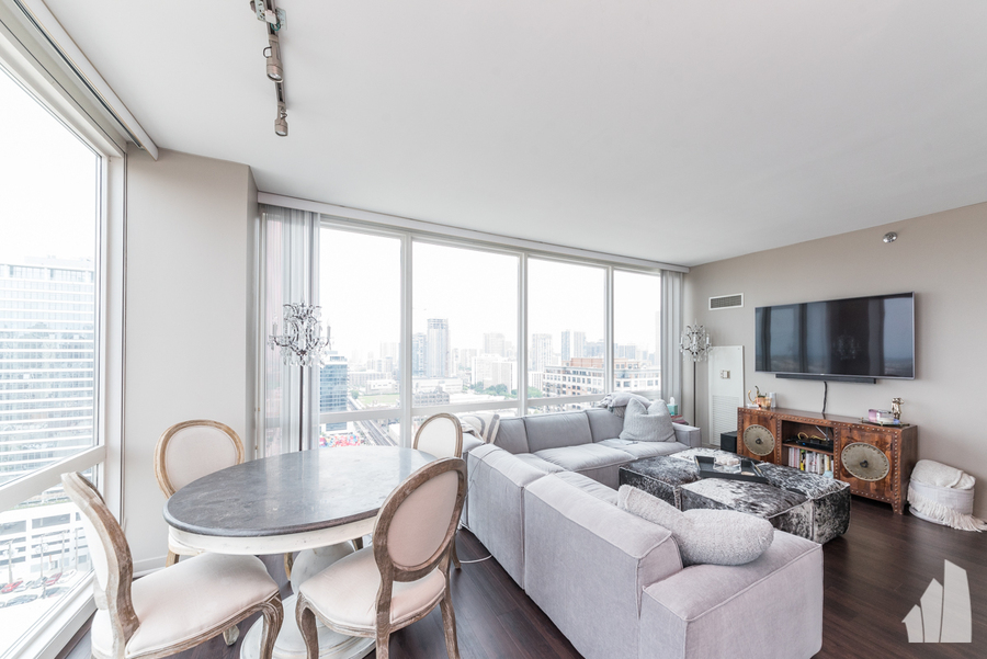 Spectacular 2 bed 2 bath condo in River North! This rarely available tier-9 unit has an open floor plan with floor-to-ceiling windows with fantastic NW city views. A modern kitchen with granite countertops, a breakfast bar, stainless steel appliances, and a dining-living room combo. The spacious master bedroom has an ensuite bathroom with double vanity, walk-in closet. In-unit laundry, central air/heat with dual-zone HVAC system. Pet friendly. Heat, cooking gas, cable, internet & water are all included. One heated garage parking available for $250/month. The building features 24 hour door staff, fitness center, outdoor pool, sun deck, receiving room & bike storage. Steps from Starbucks, Dunkin’ Donuts, Walgreens, Chicago CTA stop, dog park, shopping, restaurants, nightlife, and more! Property management company requires a mandatory Resident Benefits Package for an additional $40.00 per month; includes renters insurance, positive credit reporting for on-time rental payments, identity fraud protection, and more. *All the balconies in the building are not accessible until further notice due to the building's ongoing facade/balcony inspection.