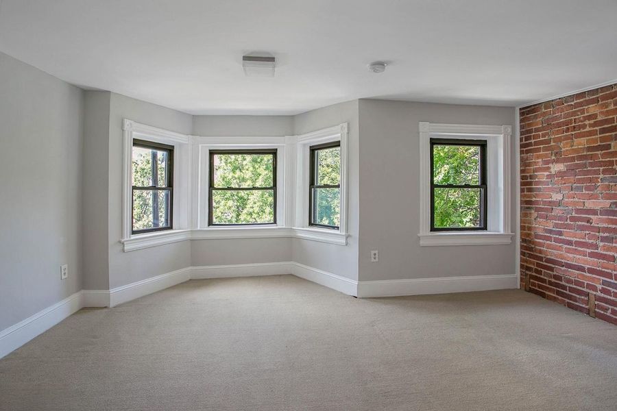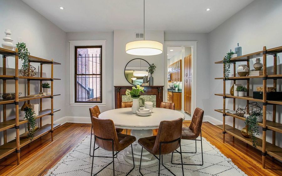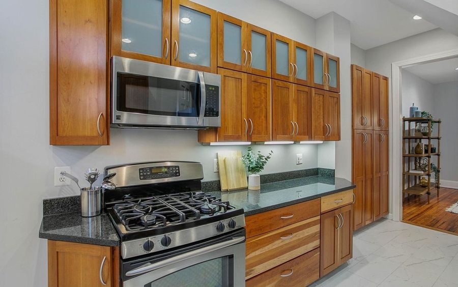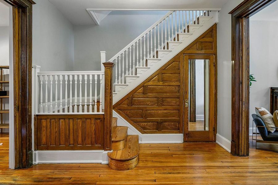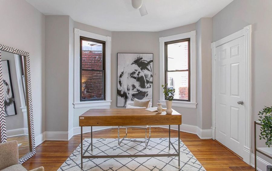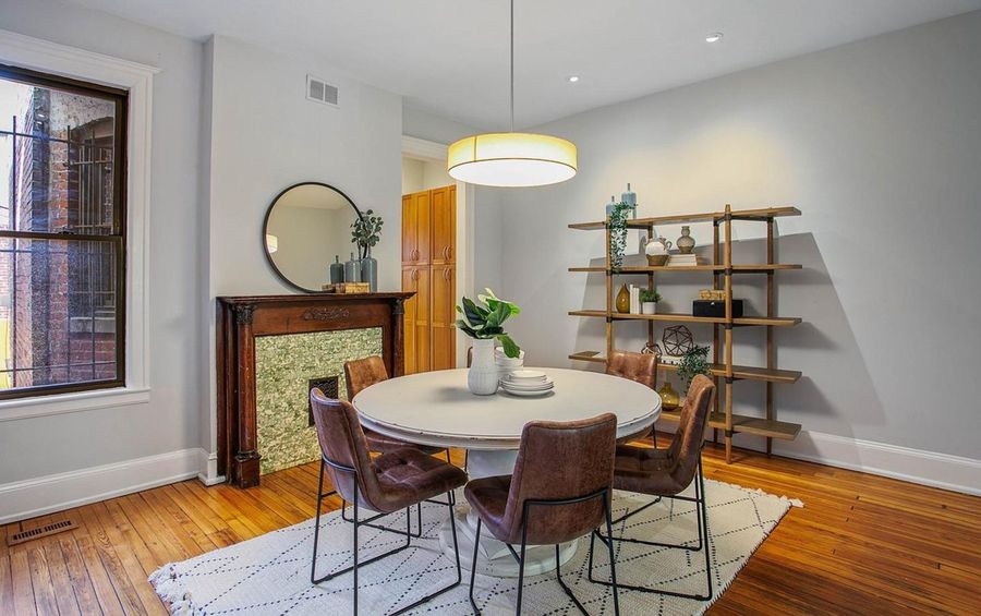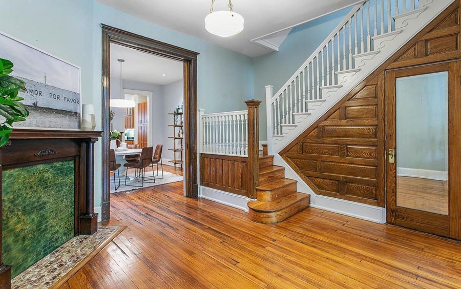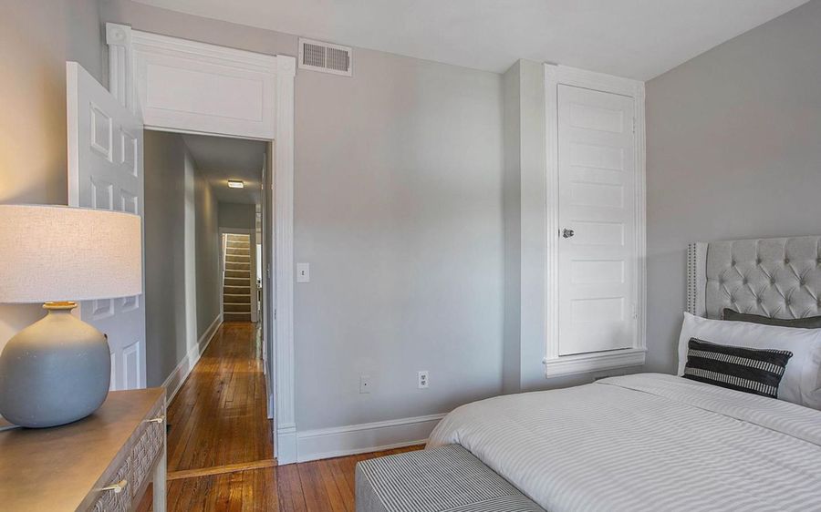This beautiful 4bd/2.5bath home has everything you need for city living! Spanning 3 levels and over 2500 sq/ft, and charming features like original hardwood flooring, gorgeous pocket doors, high ceilings, and wood trim/molding throughout the space doesn't disappoint. After entering into the unit's classic foyer, to the left, you will find the living and dining areas with plenty of windows, built-in bookcases, and two decorative fireplaces. Pass the convenient half bath and into the kitchen complete with stone countertops, stainless steel appliances including a gas range, and plenty of hardwood cabinets. A spacious deck is located out the back door. As you head up to the second floor, you'll find three spacious bedrooms, two full bathrooms, and laundry space. Don't miss the back bedroom that also has a private balcony. Finally, to the unit's top-level which houses a lovely front-facing bedroom and a flexible space that could serve as a lounge or home office.