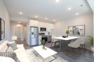 One of only Two 2BD Units in the building! Located in the basement level of the building, this unit has soaring high ceilings with three oversized windows that illuminates the open floor plan living room and kitchen. The washer/dryer and a deep coat closet are also located in the living room. The bright white kitchen features texted white subway tiles with white quartz counter tops and complete stainless steel appliance package. The hallway bathroom has a modern tiled shower/tub and vanity that matches the kitchen. The first bedroom includes a large closet and en-suite bathroom with a shower and similar design to the hall bathroom. On the other side of the living room is the second bedroom, just a few steps down, and features a unique vaulted ceiling and large closet.