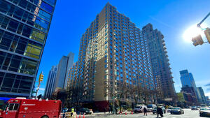 This sun blasted two bedroom residence is a remarkable find within a premier postwar doorman building nestled in the sophisticated Sutton Place enclave of Midtown East. The interior is defined by elegant hardwood floors and soaring ceilings that create an expansive atmosphere throughout the home. A dedicated dining alcove flows seamlessly from the massive living room, providing a structured yet open environment for entertaining. The culinary space features a classic dead end galley kitchen equipped with premium stainless steel appliances, while the private quarters consist of spacious king and queen size bedrooms complemented by refined marble bathrooms.