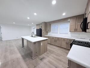 • Expansive center island with sink and seating space