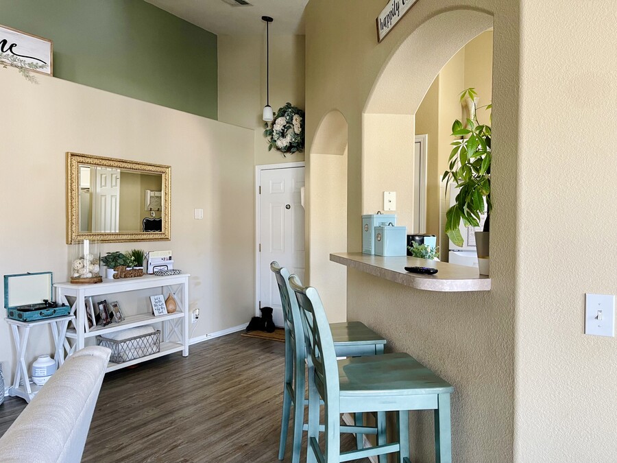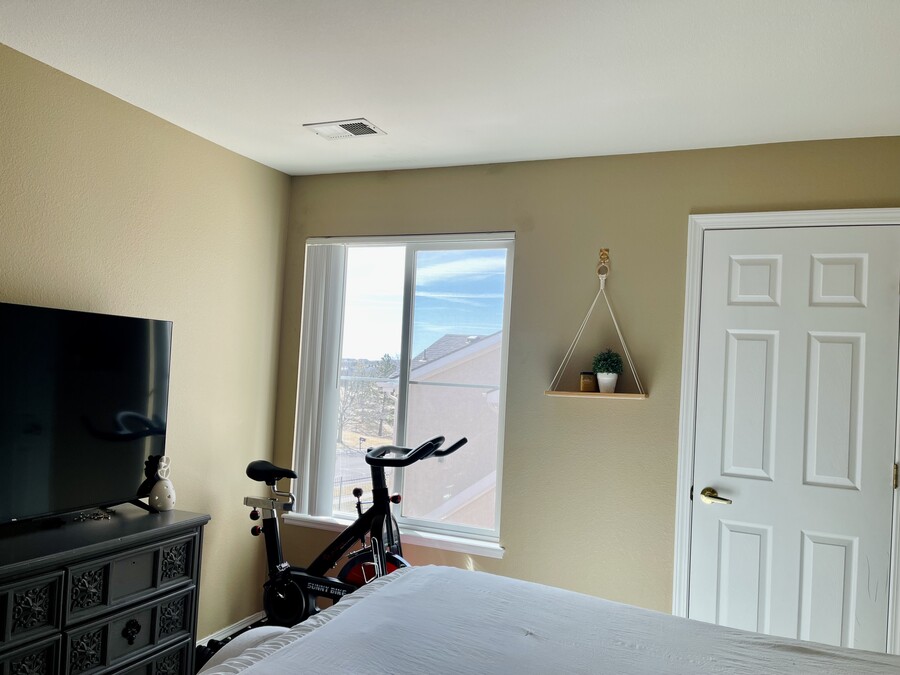Great condo near Fort Carson! The home features open floor plan, gas fireplace, air conditioning and large laundry room. The master bedroom has private entrance to patio, large walk in closet, and and private bath featuring soaking tub with jets. There is an additional spacious bedroom and bathroom. The complex is a gated community with pool, exercise room, and playgrounds. It is conveniently located close to shopping, dining, entertainment, I-25 and much more. Breathtaking mountain views!!