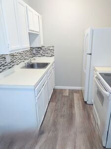 - The newly renovated units with wood-style plank flooring, brushed nickel fixtures, and a freshly painted modern color scheme contribute to a stylish and updated aesthetic.