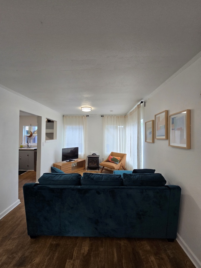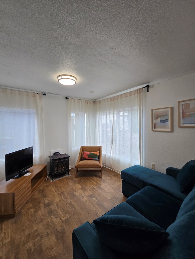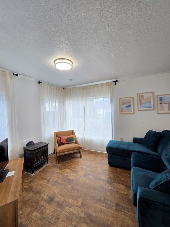 Furnished 3-bed, 1-bath 2 2-level home featuring a cozy gas fireplace that invites warmth and relaxation. Low maintenance landscape, fenced back patio with fire pit, ideal for morning coffee or evening gatherings, all while being just down the road from the lake, beach, mall, shopping and more!