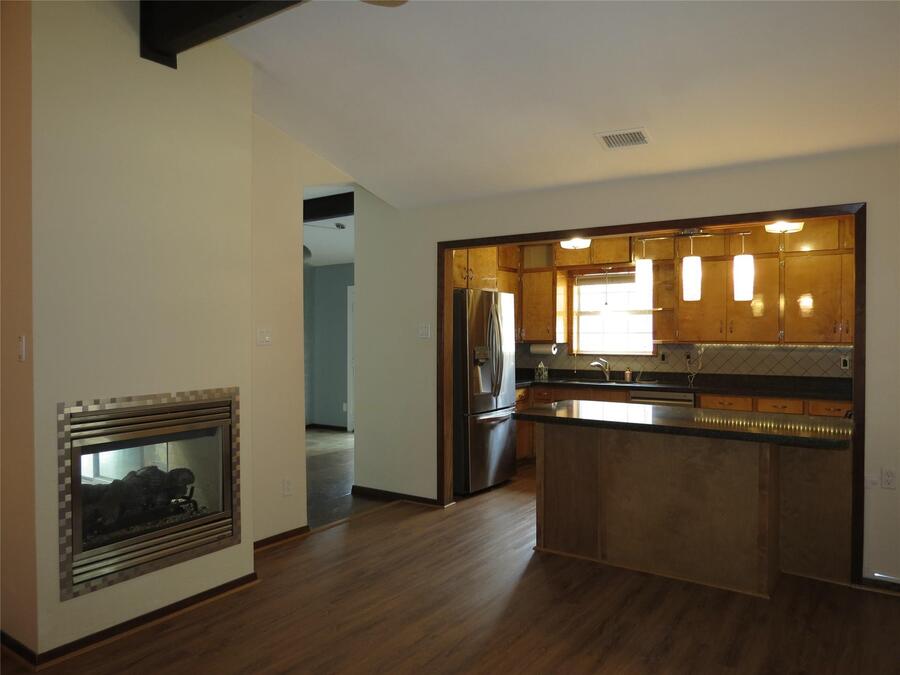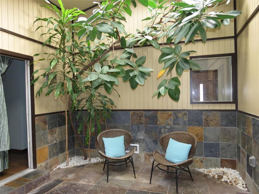 Perfect MidCenturyModern in ideal location with enough drama & cool for DonDraper! Lovingly restored over past decade, its a surprising delight. 3BR 2bath 3 living areas-including a central solarium with skylights and fireplace for a bright open core in this unique home. Dining room opens wide to private patio thru French doors. Kitchen & baths with quartz countertops, SS appliances, designer colors, fixtures & finishes. Cushy cork floors flow thru main BR and living area, slate in solarium, hardy laminate in kitchen & cozy den, neutral Berber in BRs 2&3. HUGE office studio with mini-split HVAC has many possibilities. Its a beautiful vista from the top of this hill!Intown Dwellings Realty-Lawrence Mendive (