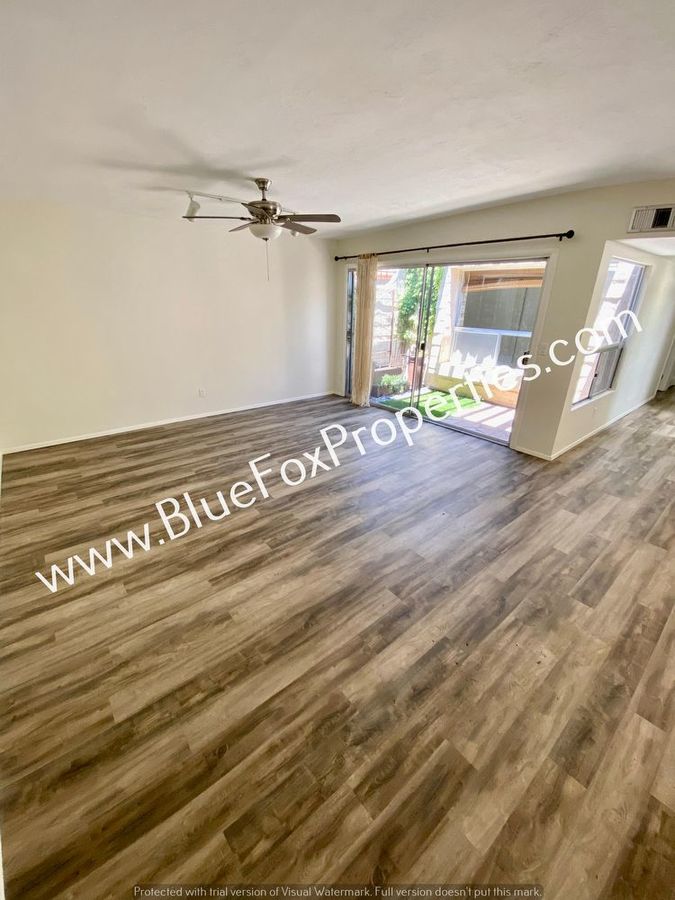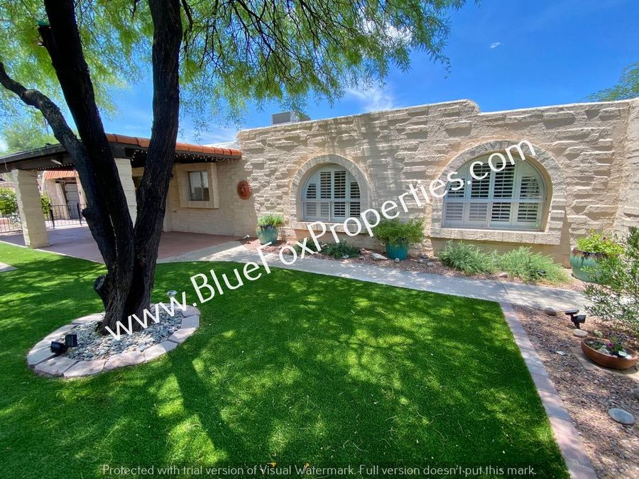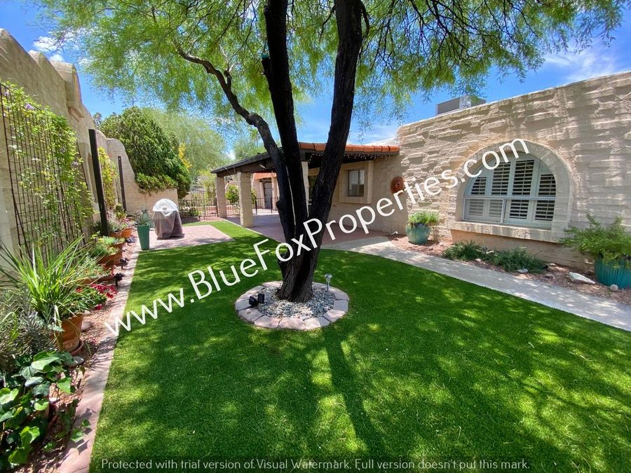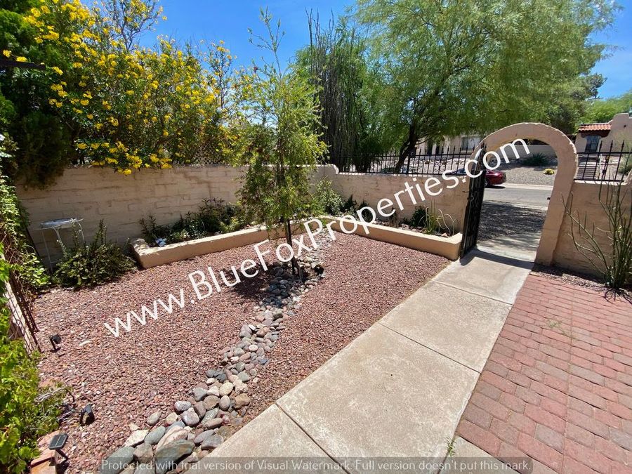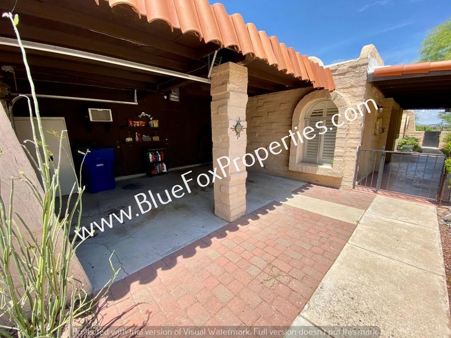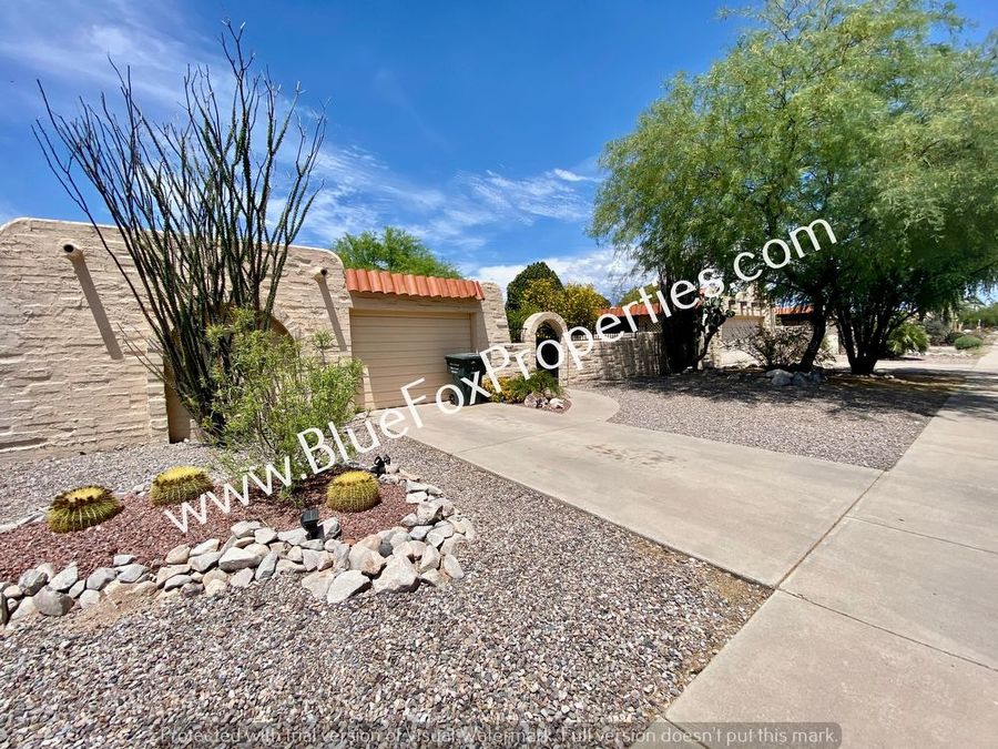 This charming brick-accented townhouse in the Santiago Villas Community is a must-see! It features laminate floors, lots of windows for natural lighting, a spacious great room, sliding doors to the sizable private yard, and more! The kitchen includes Stainless steel appliances, skylights, and plenty of counter space for all your cooking needs! Washer & dryer are included. Your backyard paradise has a covered and relaxing patio. Easy access to downtown, U of A, Pima Community College West, and the I-10 corridor. Monthly landscaping included.
