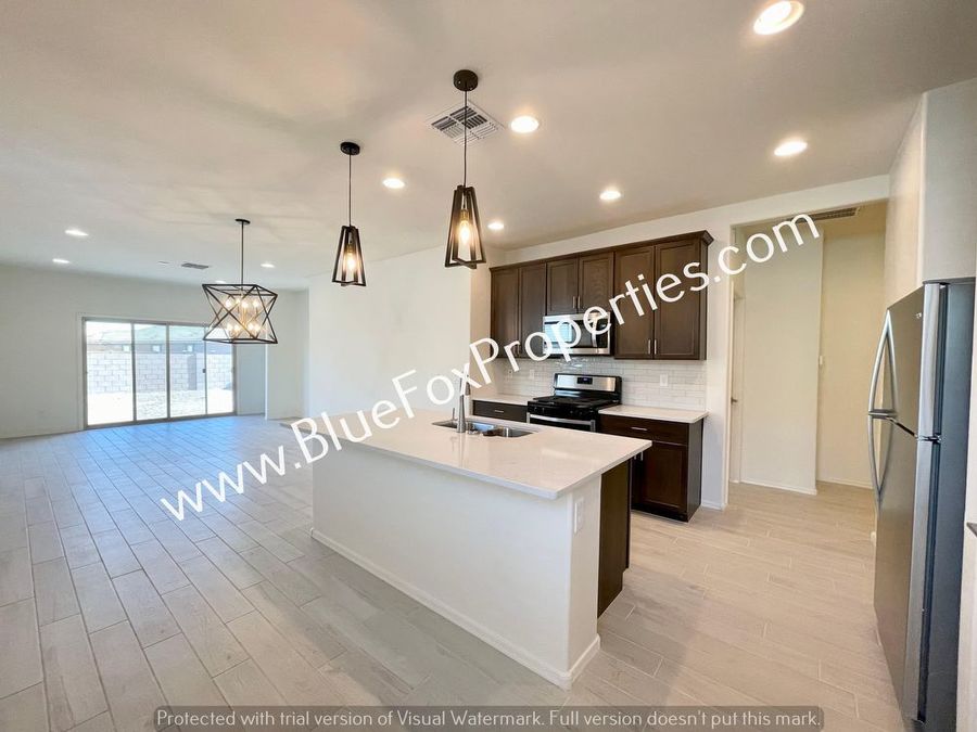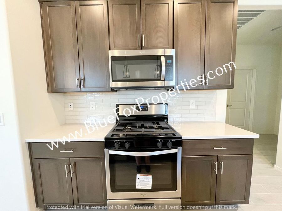 Brand new build in Gladden Farms. Great split bedroom floor plan with 4 bedrooms and 2 bathrooms. High ceilings throughout make the home feel even more spacious. Tile flooring in the main areas and carpet in the bedrooms. Kitchen is awesome with tons of counter and cabinet space, stainless appliances with a gas stove, side-by-side frig to be installed, d/w, and microwave. Washer/dryer are also included. Backyard is fully walled and has a covered patio area. The home is located next to a walking path and a lot of community parks.