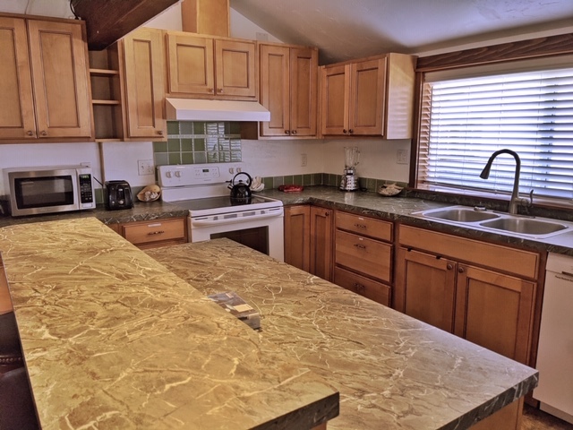 READY NOW! This furnished three bedroom two bath house with custom nautical paint theme throughout offers a large open kitchen and breakfast nook, a bonus loft room and deck with a bit of a view!