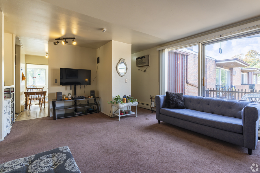The apartment features a spacious living room, a functional kitchen with full-size appliances, and a quiet bedroom with great closet space. Large windows bring in plenty of natural light, and the layout is perfect for comfortable living.