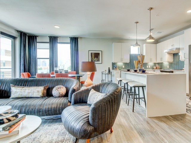 Immerse yourself in contemporary urban living at this exceptional Austin apartment community. Offering 1- and 2-bedroom apartments, these modern residences feature spacious layouts with upscale finishes and fixtures. Large windows flood each unit with natural light, revealing captivating city views and creating a warm, inviting atmosphere.