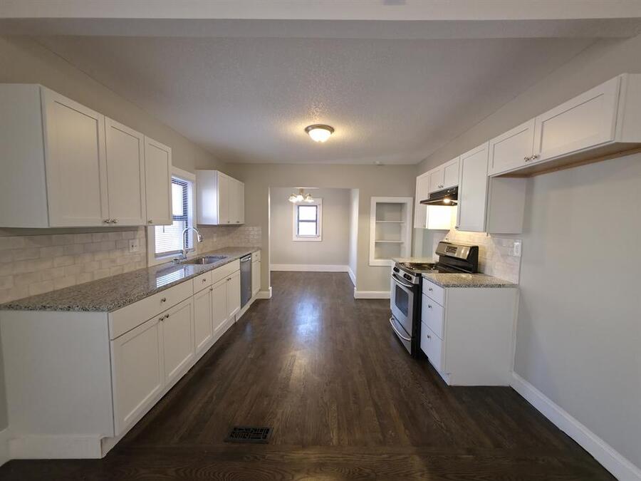This beautifully updated three bedroom, one bath home offers modern upgrades throughout while delivering a rare and highly desirable feature: an oversized two car garage designed for far more than parking. Complete with a built-in workbench, this expansive garage is ideal for a workshop, hobby space, home projects, or additional storage, while the generous space in front of the garage provides added flexibility for parking, recreational use, or outdoor setup. This multifunctional area truly sets the property apart and adds exceptional everyday value.