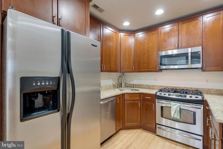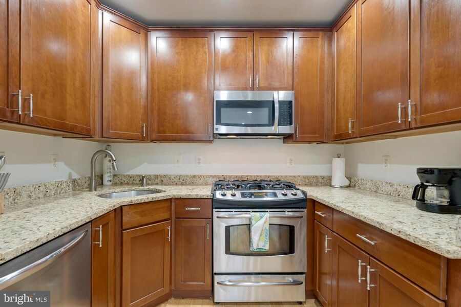 Kitchen with granite countertops, stainless steel appliances and plenty of cabinet space