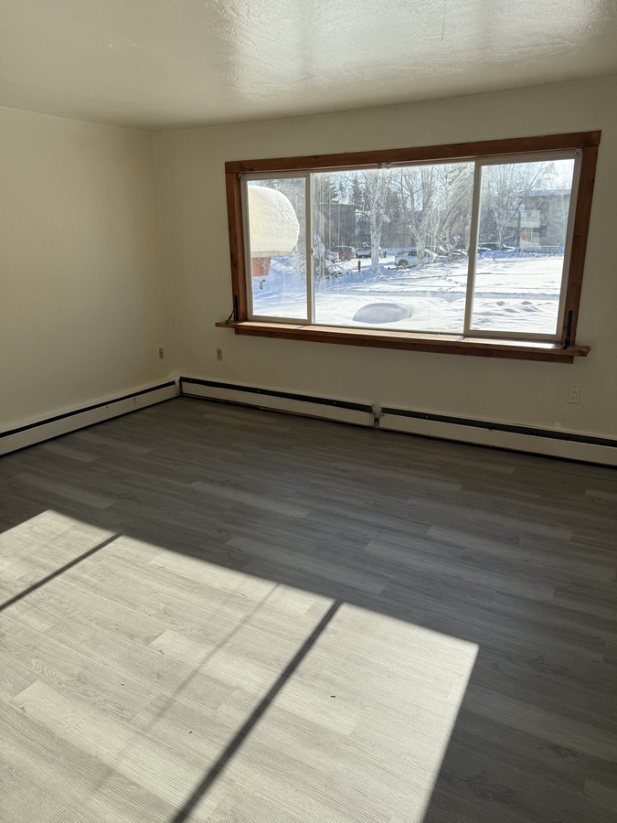 This upstairs 2-bedroom, 1-bathroom unit in Fairbanks offers a great location with easy access to the local bus system and is just minutes from Ft. Wainwright, the hospital, the University of Alaska Fairbanks, and Fairbanks International Airport. The unit features large closets in each bedroom and brand-new LVP flooring throughout, giving the space a clean and modern feel.