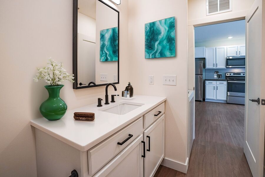 Our apartments are designed for modern living, with open layouts, full kitchens featuring granite countertops and stainless-steel appliances, and convenient in-unit washers and dryers. We welcome pets, and residents enjoy thoughtful community features including a gated parking lot, a secure package delivery room, a fitness center, and controlled access.