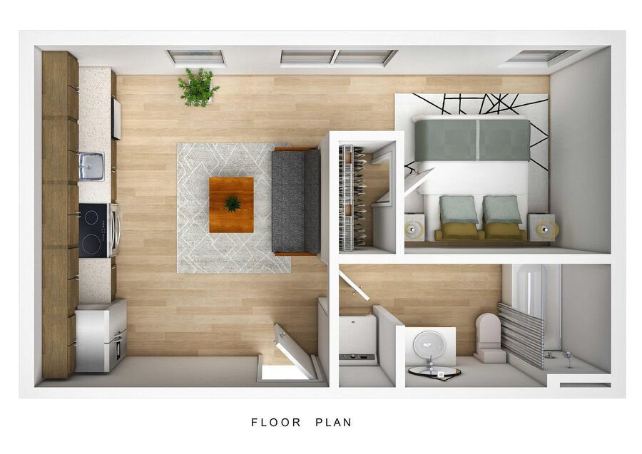 Our studio units at 476 Taylor Apartments are designed to feel like a 1-bedroom, offering a separate sleeping area for added privacy and comfort. Enjoy an open-concept layout with tall ceilings, oversized windows that flood the space with natural light, and blackout shades for relaxation. The modern kitchen features granite countertops, stainless steel appliances, and generous storage. Each studio includes an in-unit washer and dryer, making daily living convenient. With a blend of functionality and style, these studios are perfect for those looking for an efficient yet comfortable living space.