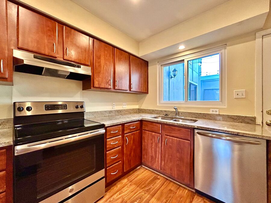 Upstairs and downstairs living spaces provide flexibility and privacy, while the generously sized bedrooms offer excellent closet space for all your storage needs. A washer and dryer are included.
