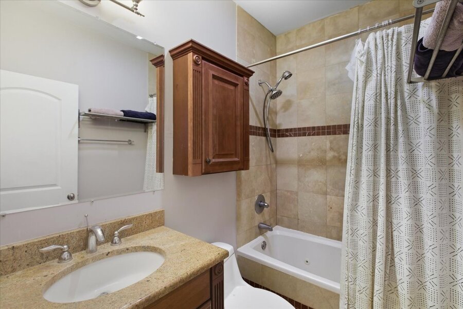 Renovated 2BD/1BA Logan Square condo with a warm, inviting feel and excellent natural light throughout. The living room and primary bedroom face west, offering bright afternoon sun. The living room features exposed brick and a cozy gas fireplace, creating the perfect space to relax or entertain. The updated kitchen includes stainless steel appliances (including a microwave and dishwasher), a double sink with garbage disposal, granite countertops, and abundant cabinet storage. The primary bedroom comfortably fits a king-size bed with nightstands and includes a built-in closet organizer. The second bedroom works well as an office but can accommodate a queen bed if needed. The bathroom features an updated sink, modern tile work, and extra storage above the toilet. A private deck off the kitchen provides room for a table and chairs, ideal for morning coffee or evening unwinding. Additional features include central heat and A/C with a Nest thermostat and in-unit laundry.