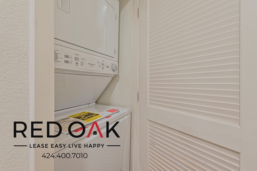 ~ In-Unit Laundry: A stackable washer and dryer are conveniently located in the hall.