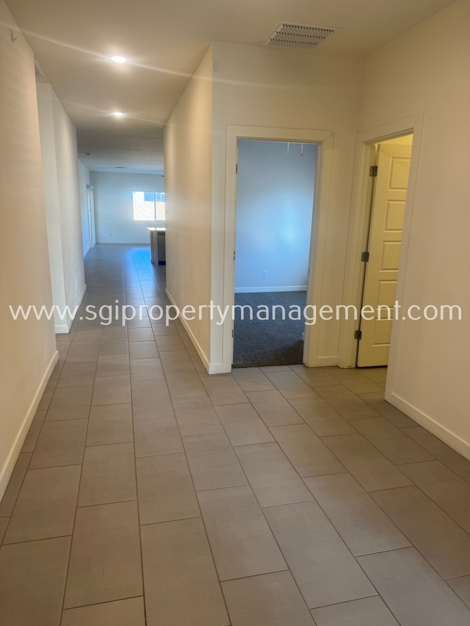 Beautifully designed 5-bedroom, 3-bath home in Casa Grande offering over 2,000 square feet of modern living space. The open kitchen features an island, quartz counters, stainless steel appliances, white cabinets, and a pantry. The primary suite includes a private bathroom with dual sinks, a walk-in shower, and a spacious walk-in closet. Enjoy stylish plank tile flooring, ceiling fans and blinds throughout, plus the convenience of an included washer and dryer. The backyard is fully finished with a covered patio, turf lawn, pavers, gravel, and plants. This property is in immaculate condition and ready for you to call home. Sorry, NO pets.