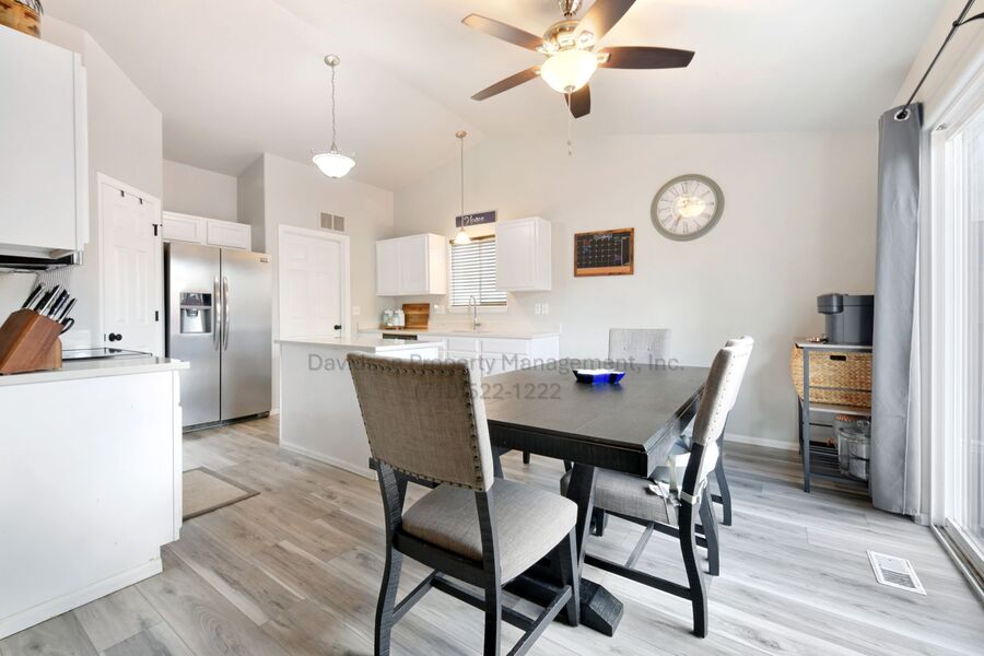 Welcome to this beautiful 3 bedroom home that offers the perfect combination of comfort, space, and modern functionality. As you step inside, you are welcomed by a spacious living room with vaulted ceilings that create a bright and open atmosphere. The open-concept layout seamlessly connects the living room, dining area, and kitchen, making the home ideal for both everyday living and entertaining. The updated kitchen features sleek stainless steel appliances, quartz countertops, ample cabinet space, and a convenient island that makes cooking and meal preparation easy. Down the hallway, you’ll find three well-sized bedrooms and a full hall bathroom, including the primary suite, which offers a private en suite bathroom for added comfort and convenience. The unfinished basement provides flexible space that can be used for storage, a hobby area, or additional recreational use depending on your needs. Step outside from the dining area onto a generously sized patio, perfect for grilling, relaxing, or enjoying the sunshine, with direct access to the fully fenced backyard. The house is complete with a 2 car garage and central air conditioning for added comfort. This charming 3 bedroom 2 bathroom house is ready to welcome you to your home.