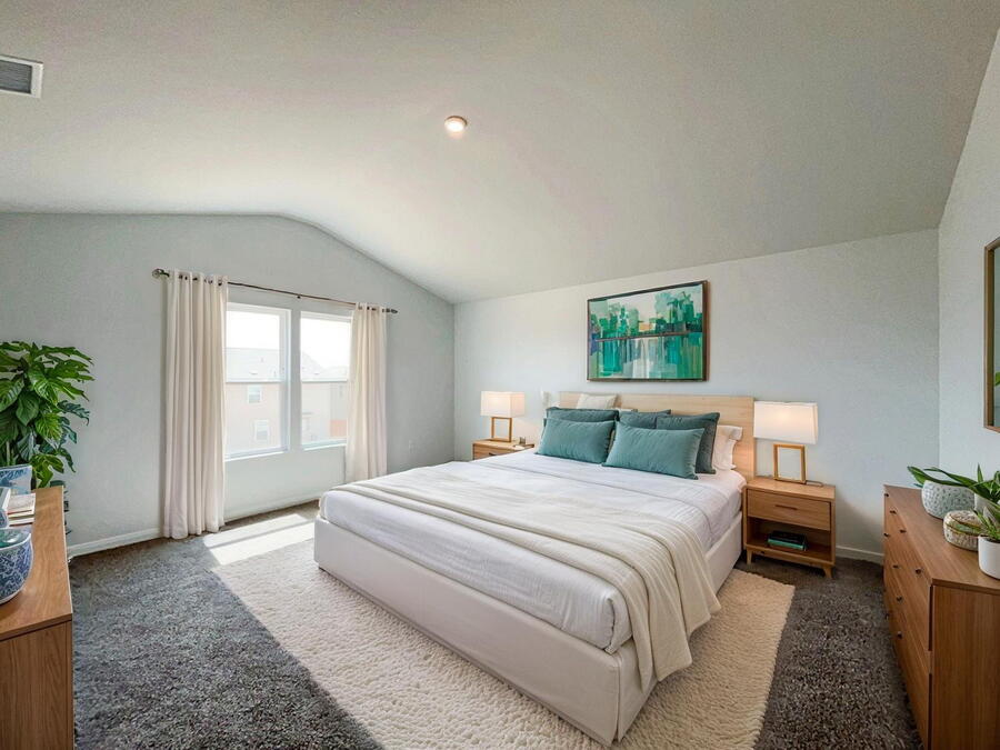 The primary suite features a private ensuite with a double vanity, creating a calm and functional retreat. Throughout the home, a combination of carpet and vinyl flooring provides comfort and durability, while low energy-efficient windows and a programmable thermostat help keep utility costs in check year-round. Additional highlights include a 2-car garage with door opener and HVAC for year-round comfort. Outside, enjoy access to a community basketball court, playground, and nearby shopping for all your daily needs.